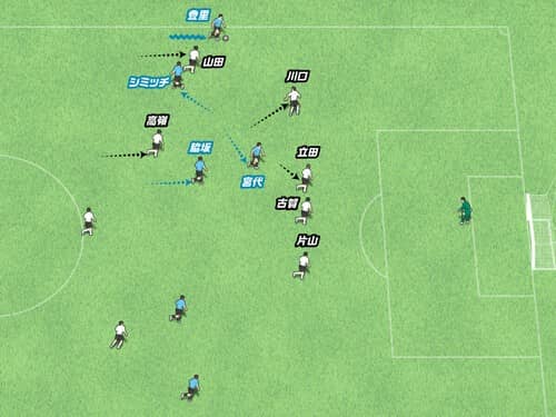 次の場面で、川崎はどのようにして相手を崩したか、というのがQuestionである。