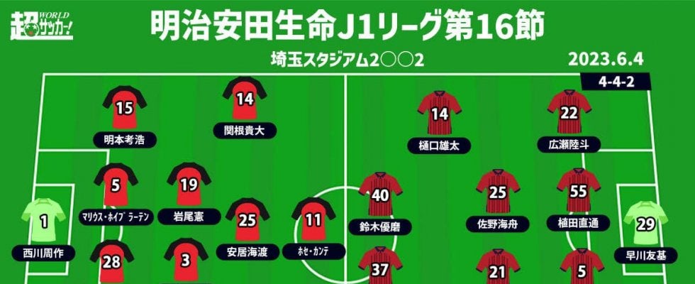 【明治安田生命J1リーグ第16節】 2023年6月4日(日) 17:00キックオフ 浦和レッズ(4位/27pt) vs …