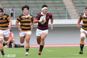 さらに点差を広げたい早大は、後半5分、敵陣22メートルライン付近でWTB矢崎由高(スポ1=神奈川・桐蔭学園)から巧みなパスを受けフランカー永嶋仁(社4=東福岡)が相手を交わし前進 。最後はサポートに入ったフッカー佐藤健次(スポ3=神奈川・桐蔭学園)がインゴールを割った。続く20分、フェーズを重ね再び敵陣に攻め入る早大。インゴールまであともう少しのところで反則を取られ相手ボールになるが、プレッシャーをかけてすぐにジャッカル。ボールを取り出した宮尾がトリッキーな動きでディフェンスを翻弄し、相手の隙を突いてトライを挙げた。26ー3とここまで慶大にトライを許さなかった早大。しかし、後半終盤、主力選手がベンチに下がると一気に流れは相手に移り、2連続で失点する。なかでも、30分に自陣22メートルライン外側からモールで相手に大きく前進され、押し返すことができないままトライを献上した。このトライが大きな打撃となり、そこから早大は勢いを取り戻すことができない。試合終了間際まで慶大の攻撃が続いたが、粘り強くディフェンスし、リードを守って26-17で勝ち切った。