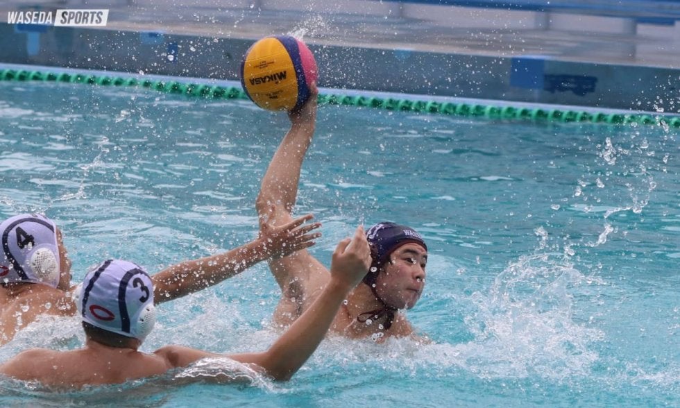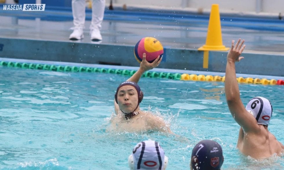 第1P1分、中村大智(スポ3=埼玉・秀明英光)が流れてきたボールをワンタッチで押し込み、先制。その後相手にペナルティースローを与えるも、GK加納凪人(スポ2=三重・四日市中央工)が食い止めるなど、幸先の良い立ち上がりを見せた。しかし、この後3連続失点を許してピンチに。ようやく5分、相手の退水(※)を誘って数的優位に立ったところで、都田楓我主将(スポ4=鹿児島南)が得点する。6分にはカウンターからボールは加納恒心(スポ1=東京・明大中野)へ。右サイドから目いっぱいに投げ込み、ゴールを揺らした。最後に1点を献上したものの、3ー4まで追い上げて、第2Pに入った。「いい流れができていた」(加納(恒)。ここで早大オフェンスが覚醒する。まずは1分、古谷典也(スポ2=東京・明大中野)のバウンドシュートで同点に並ぶ。その直後には、永津智也(スポ3=熊本・済々黌)がシュートするも跳ね返されたところで、これを逃さず中村が一気に決め入れ、逆転した。さらに3分、相手ディフェンスが整っている中、加納(恒)がうまくコースを突いてバウンド気味にゴール。その後も都田が右サイドの急な角度から見事に得点を挙げれば、直後のカウンターからは中村がロングドリブルをかけ、またも都田にパスが。これもゴール真下に突き刺し、さすがの正確性を見せた。6分にも加納(恒)が右サイドからゴールを奪い、このピリオドだけで6得点。9ー7とリードして前半を折り返した。