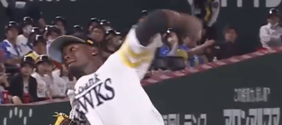 DeNA戦の9回に登板したソフトバンクのリバン・モイネロ【画像:パーソル パ・リーグTV】