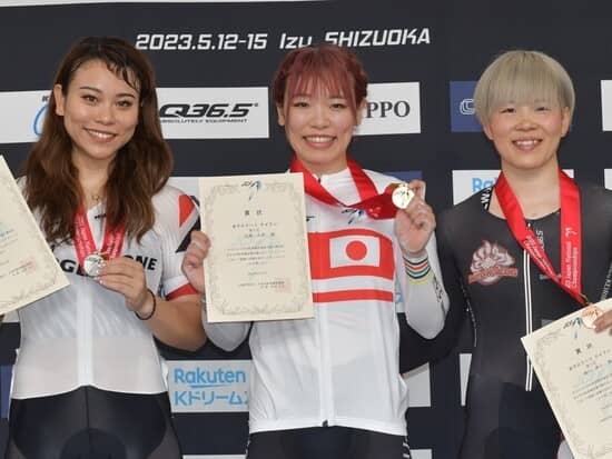 5月の全日本トラックで表彰台にのぼった(左から)太田りゆ、佐藤水菜、梅川風子
