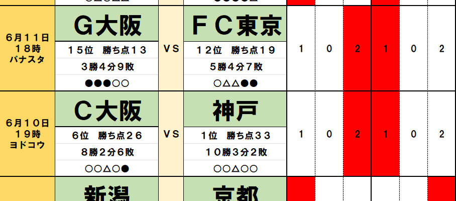 今回のtotoではJ1第17節の9試合とJ2第20節の4試合が対象となっている。過去のデータや直近の様子などから、分析を進めてみよう。
