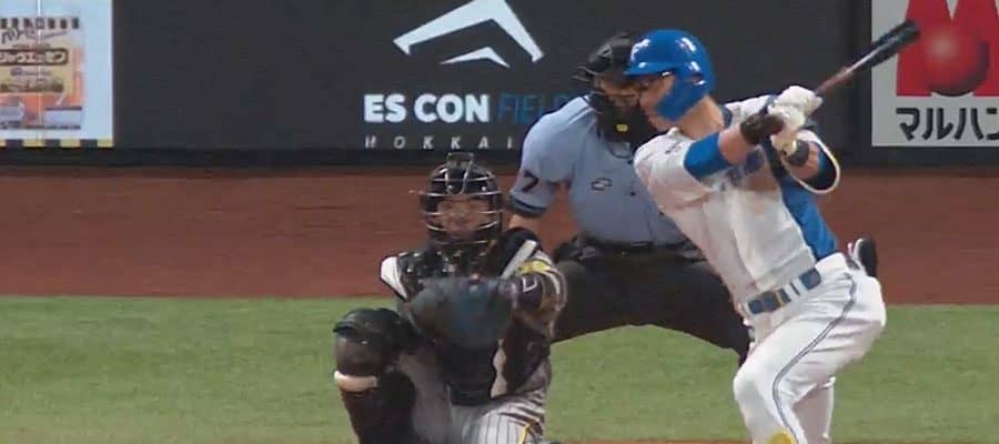 阪神戦で本塁打を放った日本ハム・江越大賀【画像:パーソル パ・リーグTV】