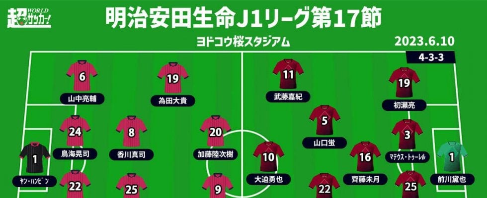 【明治安田生命J1リーグ第17節】 2023年6月10日(土) 19:00キックオフ セレッソ大阪(6位/26pt) v…