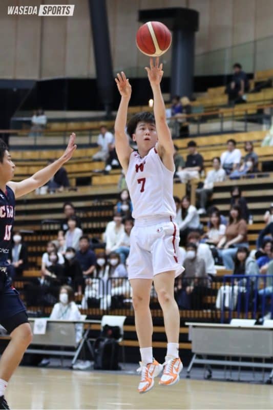 昨日の日体大戦は、(スリーポイントの成功率が)6分の1というあまり良くないスタッツだったし、自分のシュートタッチ的にも、感覚としてはあまり良くなくて、「今日はぜったいにやったろう」という気持ちで臨んでいました。その中でみんな僕にパスをつないでくれて、決められたので良かったです。