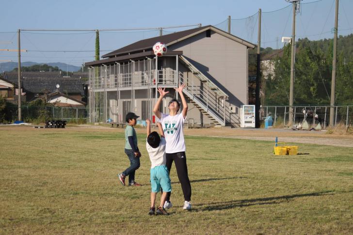 子どもたちの多くは、すでに2回、3回とこのイベントに参加しているので、要領はだいたいわかっている。また、顔見知りもできて一緒に遊ぶ仲間もできている。『放課後あそび場プロジェクト』では、硬式野球部員をはじめとする滋賀大学の学生も運営補助として携わっており、グラウンドでは大学生が場をうまく盛り上げ、子どもたちと一緒に遊ぶ様子も見られた。子どもたちと大学生とのこのような触れ合いも、プロジェクトが好評を得る理由の一つになっている。