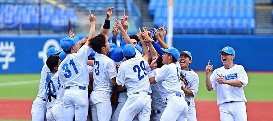 選手権優勝を決めた青学大ナイン【写真:中戸川知世】