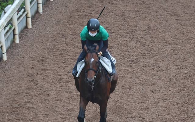 栗東に帰厩したノットゥルノ(撮影:井内利彰)
