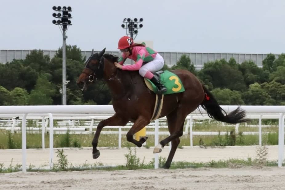 14日、名古屋競馬場で行われた第10Rで、30日間の騎乗停止が明けたJRAの永島まなみ騎手が実戦に復帰。単勝1.8倍、断然の1番人気に支持されたビッグボーンリタ(牝3・栗東・高橋康之)に騎乗して1着となった。