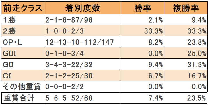 過去20年の前走クラス別データ(c)netkeiba.com