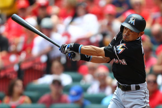 敵地カージナルス戦でマルチ安打を放ったマーリンズ・イチロー【写真:Getty Images】
