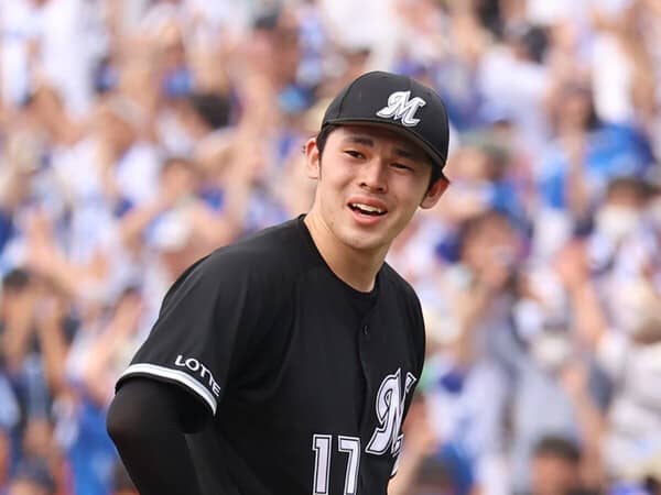 DeNA戦で本塁打を打たれ、苦笑いのロッテ佐々木朗希
