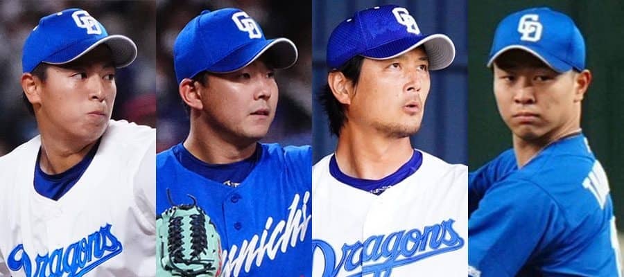 中日・仲地礼亜、小笠原慎之介、涌井秀章、高橋宏斗(左から)【写真:荒川祐史】