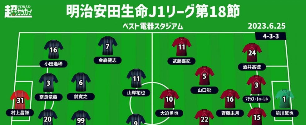 【明治安田生命J1リーグ第18節】 2023年6月25日(日) 19:00キックオフ アビスパ福岡(11位/20pt) …