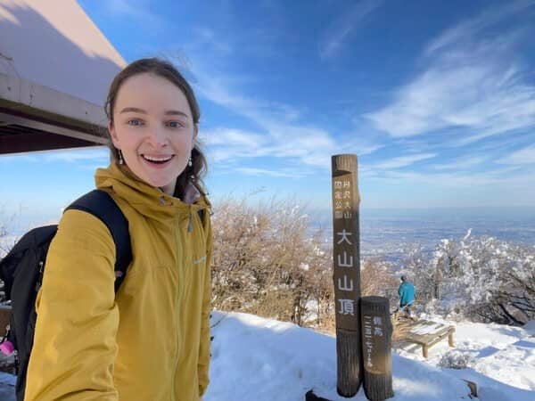 安涼奈(以下、同) 2021年1月、本格的に登った初めての山です。ケーブルカーを使わずに、男坂と女坂があるうち女坂のほうを登ったんですよね。この時は珍しく雪が積もっていて、雪景色とか霧氷とか、なかなか見る機会のないすばらしい景色を見ることができました。天気がとてもよくて、眺めもすばらしかったです。