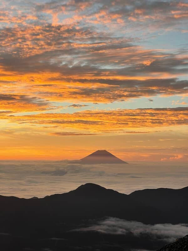 3日目は予定を変更して、聖岳には行かずに下山しました。天気予報はすごく悪かったのに、朝起きたらいい天気! 朝焼けがきれいで、富士山も眺められて。山の神様が味方してくれたなぁって思いました。