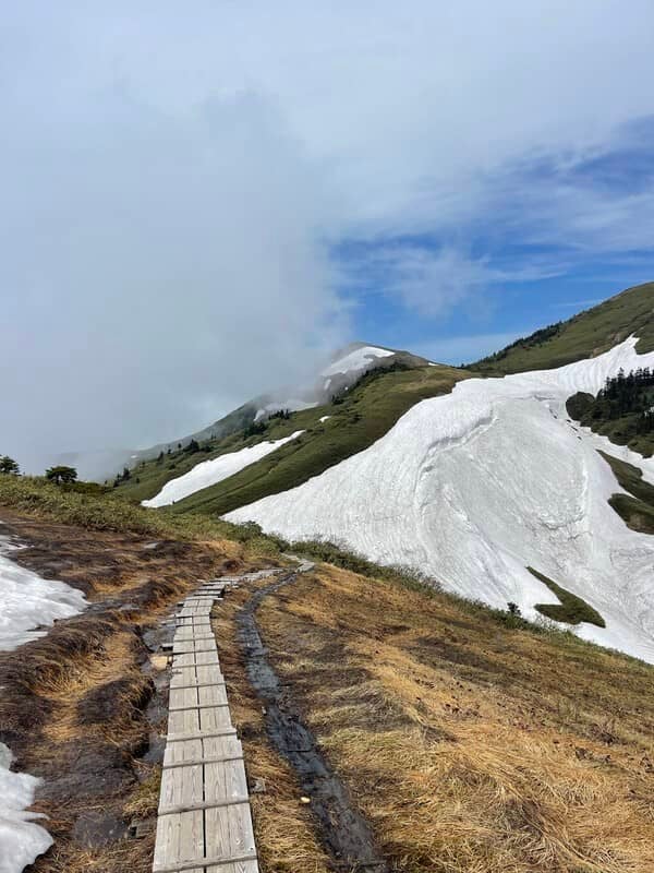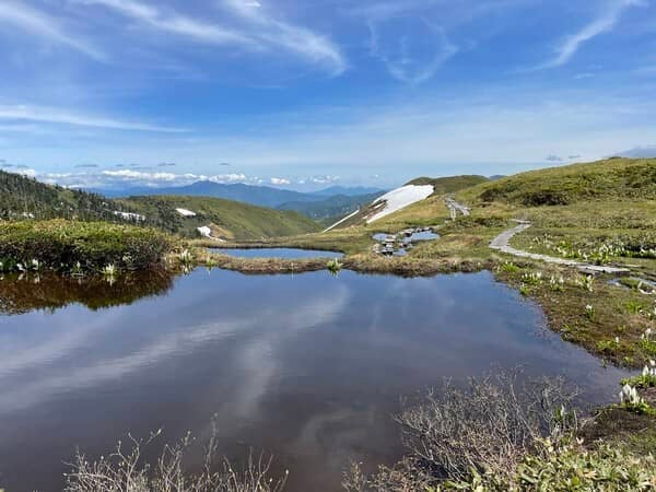 初めて登った新潟県の山ですね。山頂から見える上越の山々の景色が感動的すぎました。標高が2000m台だけど、山頂近くは木々がなくて眺めがすごくいいんですよ。