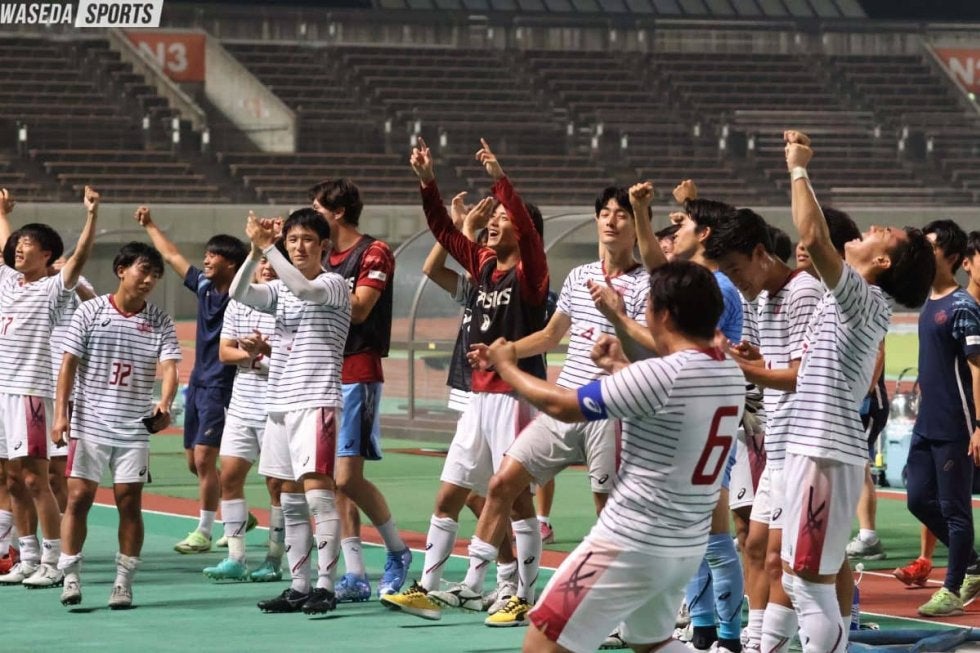 5-2という大味なスコアとなったこの試合。兵藤監督が掲げる「常に3点を取れるチーム」、「5-4でも、相手より1点でも多く点を取って勝てればいい」といったコンセプトがまさに現れた一戦となった。特に5-2とリードを広げた中で、光田や小松寛太(教4=東京・早実)といった攻撃に強みのある選手を次々投入し、攻撃の手を緩めずさらに追加点を奪いにいく姿勢を見せ、その結果、相手をなかなか自陣から出さすことなく試合を閉めた。1部相手にそういう試合展開をできたことは、間違いなく自信につながるだろう。今季力を入れている攻撃の部分を含め、チームとしてどんどん成長しているところも見ることができた。それでも兵藤監督は、「僕らが目指しているサッカーはもっと上のところなので、ボールももっと動かせるし、もっと面白い攻撃をたくさんしていきたい」と、目指すところを高く持ち、チームとしてより成熟させていきたいという。この勝利でアミノ杯ベスト4進出と4大会ぶりの総理大臣杯出場が決まったが、「ここはあくまで通過点。日本一を本気で目指しているので、そこに向けてまた全員で積み上げていきたい」と平松。チームとして狙うのは頂点のみ。まずは残りの2試合を勝ち切り、アミノ杯獲得すなわち関東の頂点に立つ。そして夏の総理大臣杯も制し、必ず日本一という目標を達成したい。