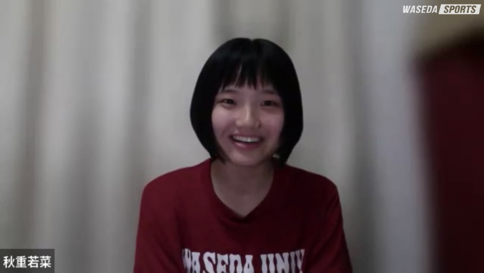 秋重 早稲田大学女子バレーボール部主将、3年の秋重若菜です。ポジションはアウトサイドヒッターです。よろしくお願いします。
