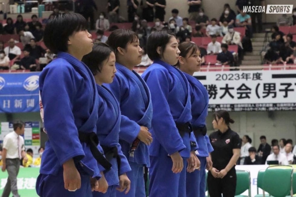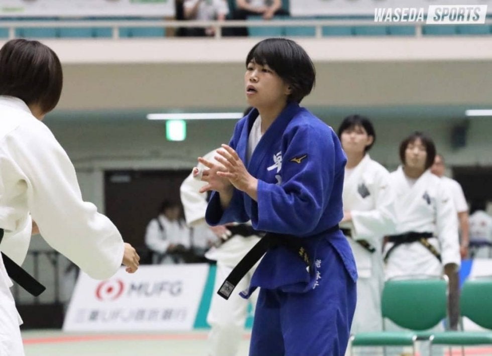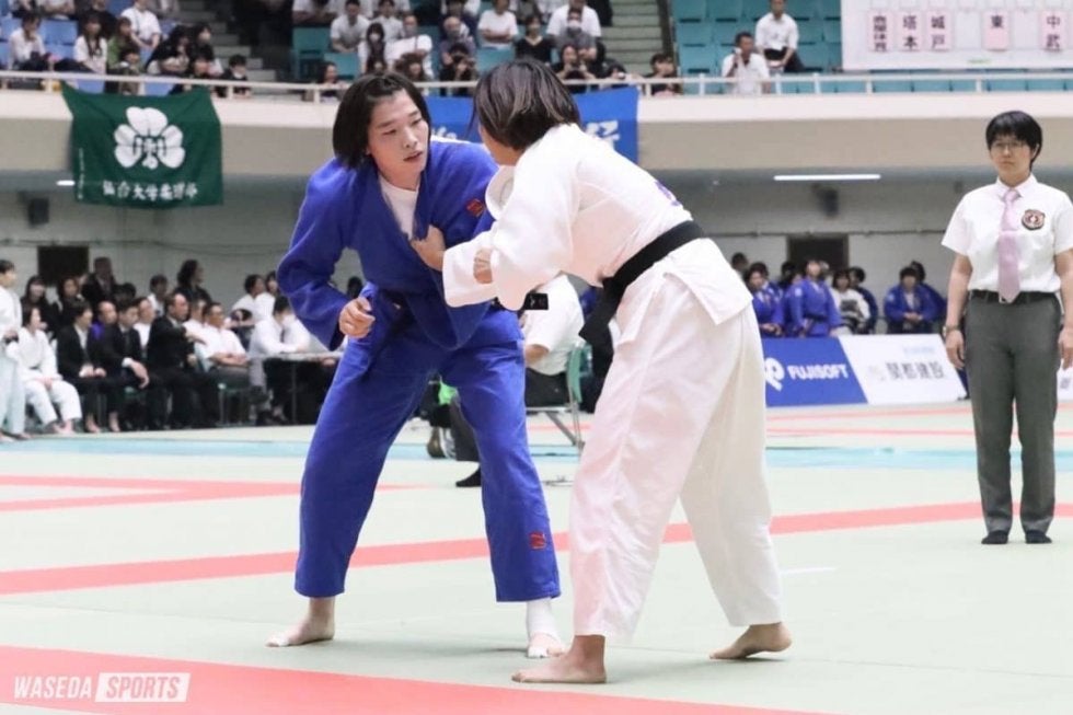 先鋒を務めたのは、全国高等学校選手権57キロ級で優勝経験のあるホープの姥琳子(スポ1=福岡・修猷館)。序盤からすかさず投げ技に挑むなど積極的な攻めを見せたが、惜しくも引き分けとなった。続く次鋒の出口華(スポ3=兵庫・夙川)は、序盤で対戦相手とともに2つの指導を受けるなど、後がない試合展開に。寝技などで果敢に攻め込んだ出口だったが、残り時間あとわずかで反則負けを喫した。