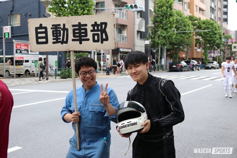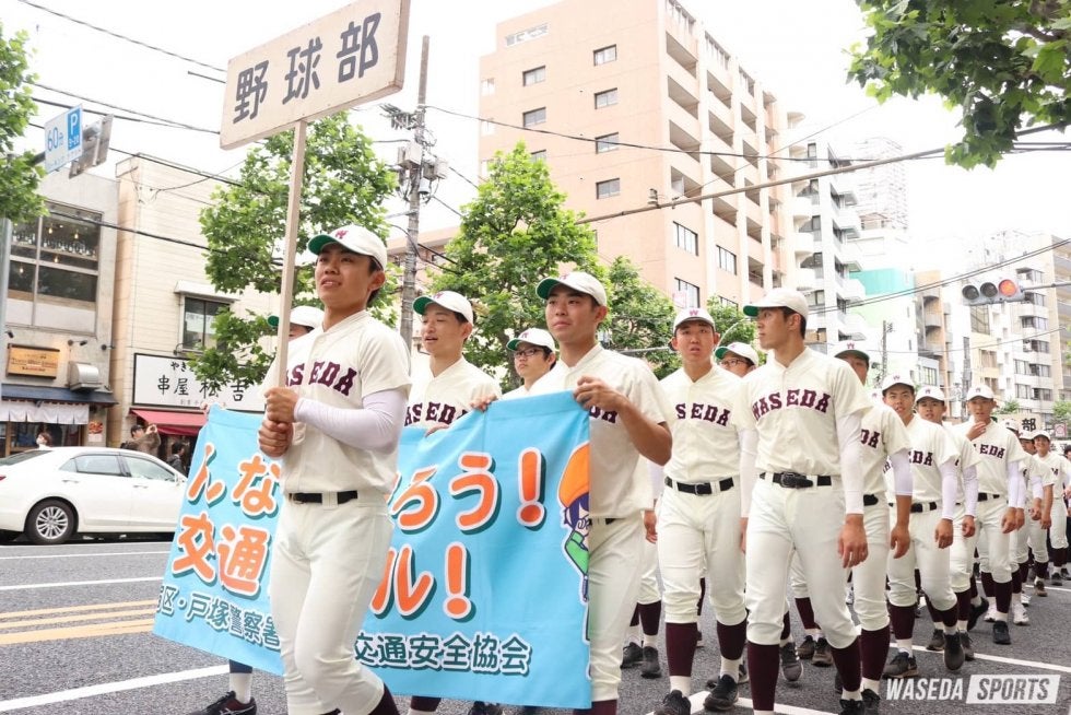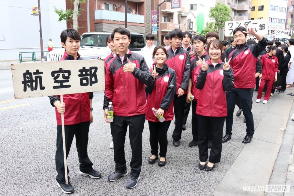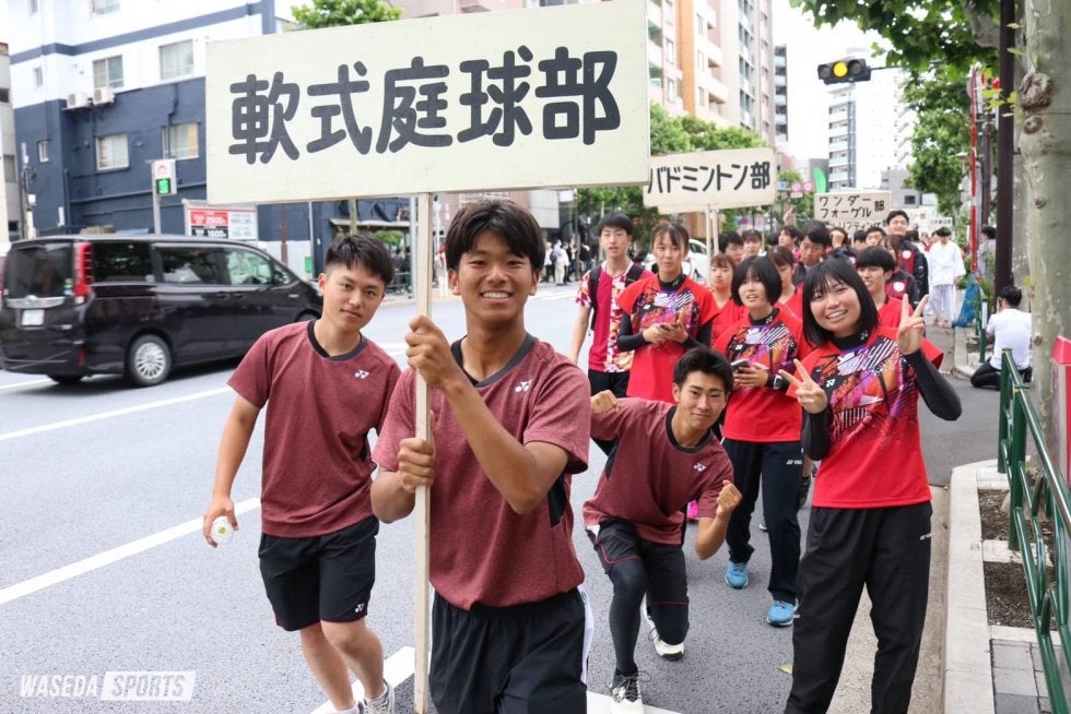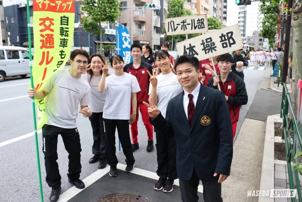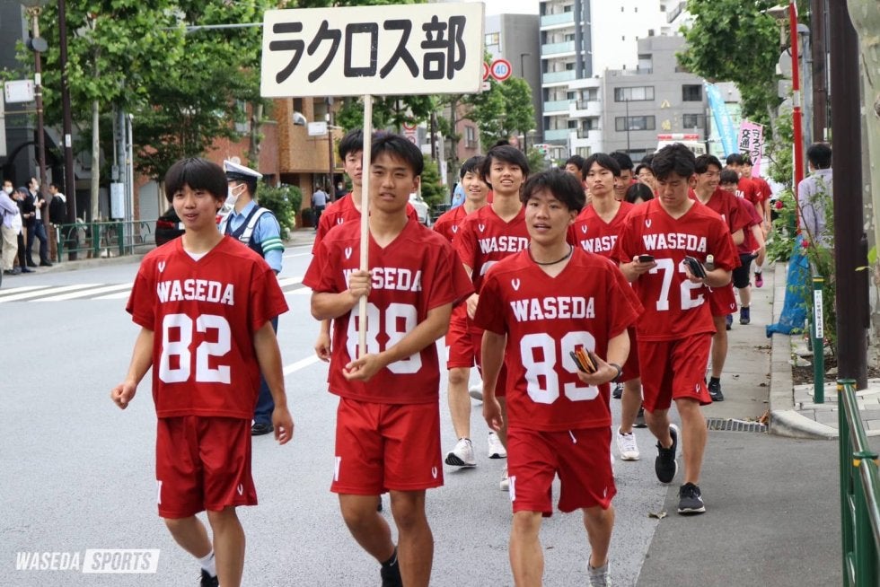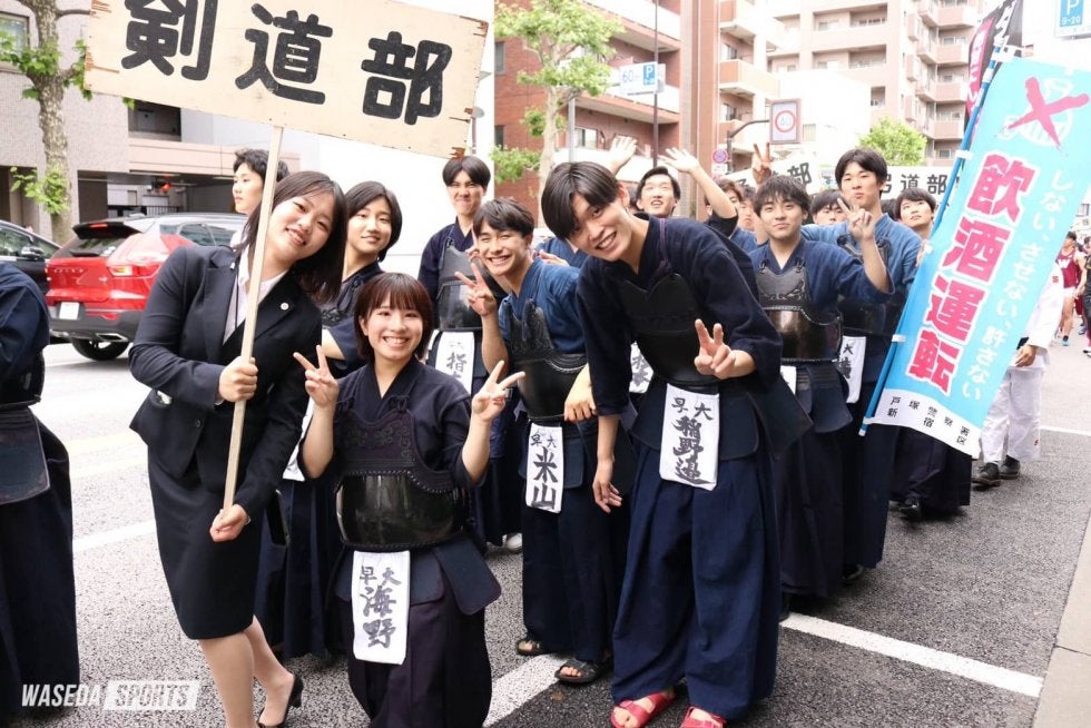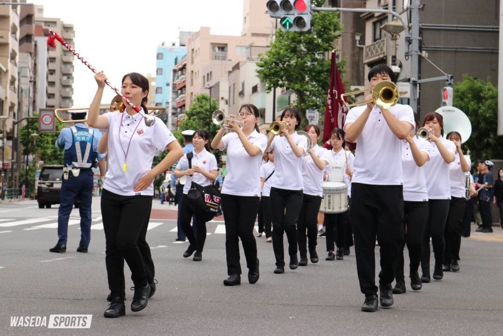 入部式が挙行された5月20日の午後、高田馬場駅近辺から早稲田キャンパスまで新入部員パレード(新人パレード)が実施された…