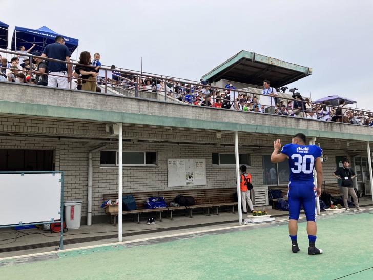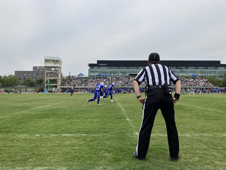 「アメフトはプレーが頻繁に止まり細かい反則も多い。わかりにくい競技だと思います。尼崎ボウルに来る人は初めて観る人が多いはずです。リプレー映像を流すなどして、何が起きているかをしっかり伝えるべきだと思いました」