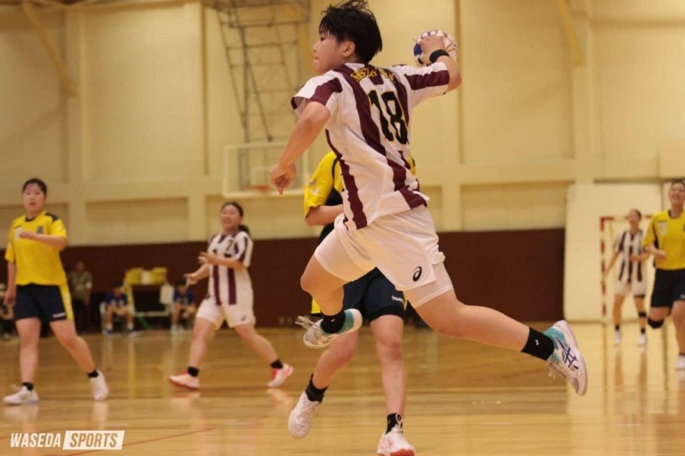 関学大の応援部が駆けつけ、完全アウェーの雰囲気の会場中、今年も熾烈(しれつ)な争いが繰り広げられた。「セットでやる関東に対して関西は速攻。雰囲気や、スピード感の違いを私だけではなく、他のみんなも感じていた」と、川村夏希(スポ4=東京・佼成学園女)が振り返るように、関西と関東の壁に苦しむこととなる。試合スタートから4連続得点を奪われた早大だったが、浦野詩織(スポ4=愛知・旭丘) のカットインから相手を退場させると、ペナルティスローを任された井橋萌奈(スポ1=東京・白梅学園) が待望の1点を挙げる。村上や杉浦亜優(スポ2=愛知・名経大市邨)の体を張ったプレーで関学大のコートプレーヤーを4人に追い込み、数的有利の状況をつくる。そこから徐々にペースをつかみ始めると、ディフェンスからも流れを引き寄せる。前半13分には、村上楓主将(スポ4=福岡・明光学園) がパスカットから速攻につなげると、5-5で同点に追いつく。その後も、青木のサイドシュートや浦野のアウトカットインなどで着実に得点を重ね、14-14で前半を折り返した。
