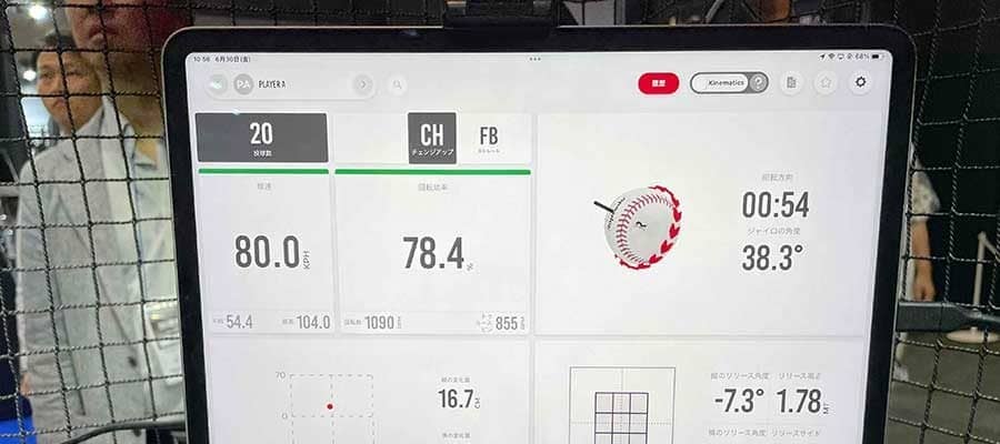 タブレットに表示された「Rapsodo」で計測したピッチングのデータ【写真:高橋幸司】