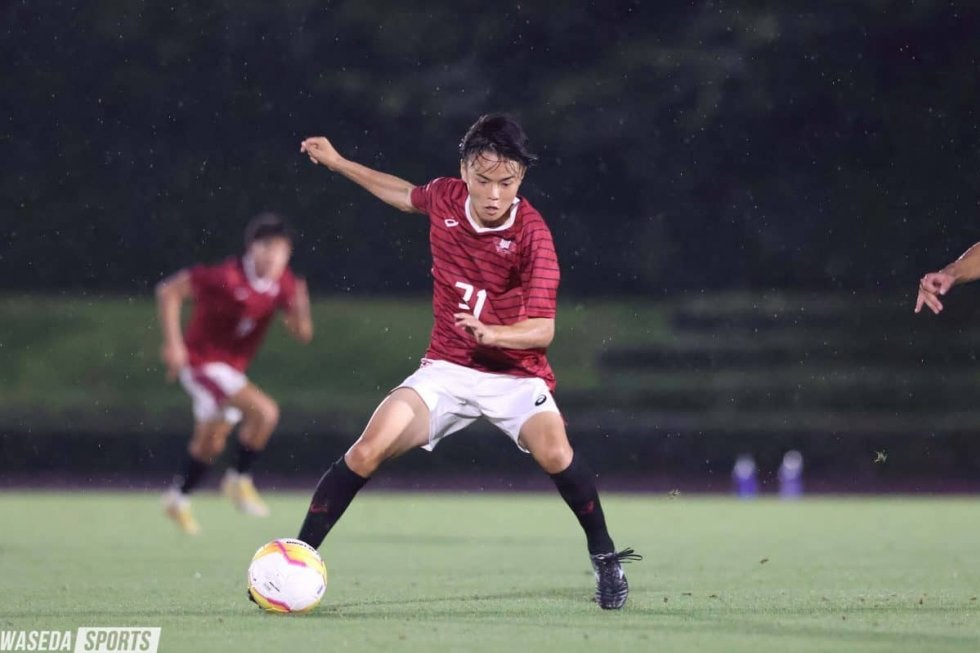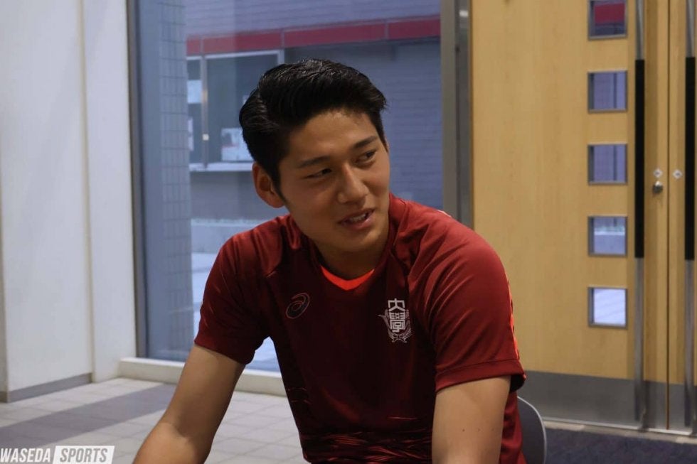 神橋 センターバックでゴールですね。あの舞台で点取るってやっぱりヒーローになれると思いますし、みんなその瞬間を狙ってやってると思うので、早慶戦という舞台で点を取るというのは今の目標というか、ちょっと夢みたいなものではありますね。去年自分がベンチで見てて、点取った平松君と小倉君(陽太、スポ4=横浜FCユース)の姿がすごい輝いて見えたので、今回は自分がああなりたいなって思ってます。