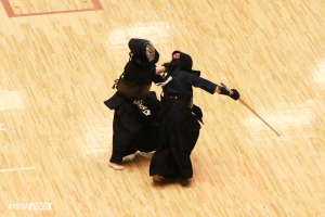 門田の1回戦は第4試合場の第1試合だった。相手は北信越大会ベスト8の池田(福工大)。消極的な相手に門田が攻めていく試合が続く。均衡を破ったのは試合2分ごろ、門田が一度メンを狙いに行くそぶりを見せ、相手の剣先が浮いたところにコテを放つ。ここで相手はコテを狙ってくるが、更に連続でメンを放ち一本。相手は決まったのか一瞬分かっていないそぶりだったが、審判全員の旗が上がる素晴らしいコテからのメンで今大会一本目を奪った。この後大きな試合展開はなく5分が経過、一本勝ちとなった。