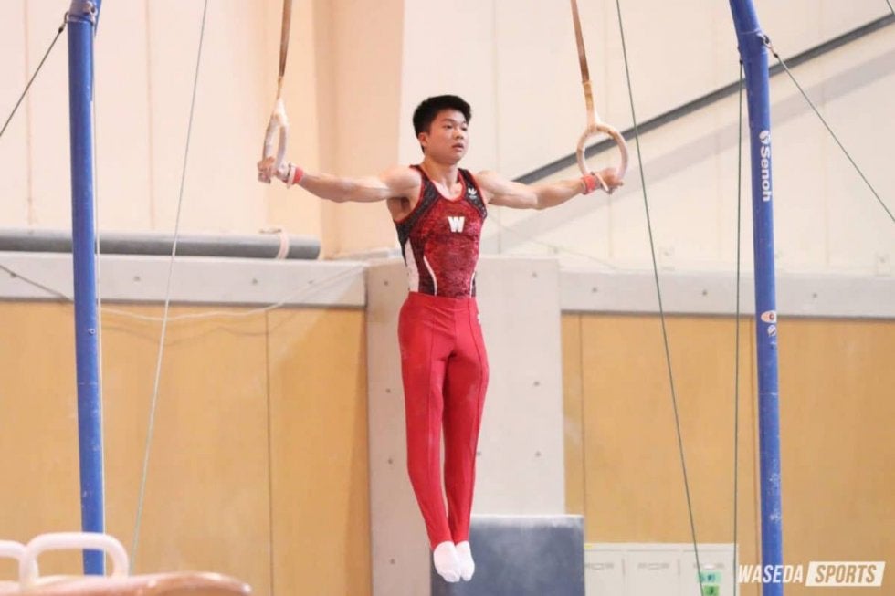 第2種目のあん馬では、田口が会場を沸かせた。13.500点で笑顔を見せた田口に続き、今年NHK杯に出場した向中野蓮(スポ3=千葉・市船橋)も圧巻の演技を披露する。一息ついてから競技に臨むと、勢いもありながらなめらかな演技で観客を魅了。今大会最高得点となる14.600点をたたき出し、これには両手でのガッツポーズも飛び出した。また、つり輪では山口陽亮(スポ3=福井・鯖江)が力強い演技を見せる。早慶戦初出場となる1年生の田村優(スポ1=東京・松蔭大松蔭)は、「優頑張れ」「ラスト決めろ」といった声援を受けながら一つ一つ確実に技を決め、13.400点で見事1位に輝いた。