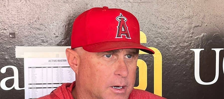 パドレス戦前の取材に応じたエンゼルスのフィル・ネビン監督【写真:小谷真弥】