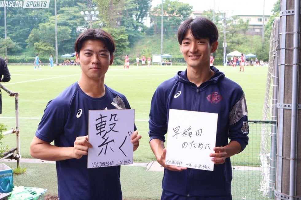 2001(平13)年6月7日生まれ。177㌢、72キロ。神奈川・鎌倉高出身。社会科学部4年。早慶戦での注目選手は平松柚佑主将(社4=山梨学院)だという山田選手。自身が憧れた早慶戦で、山梨学院高出身の加藤拓巳選手(令4スポ卒=現清水エスパルス)が活躍されていたからこそ、同じく山梨学院高出身の平松選手に期待したいそうです!
