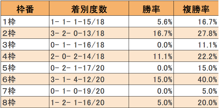 七夕賞は偶数番枠の勝率良し 近年不振の7枠
