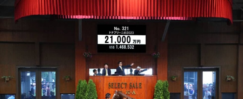7月11日、北海道苫小牧にあるノーザンホースパークで、日本最大のサラブレッド市場「セレクトセール2023」が開催。当歳馬セールにて上場番号321番・ドナブリーニの2023(牝)が2億1000万円で落札された。