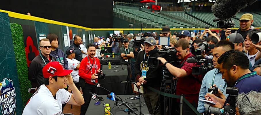 ロサンゼルス・エンゼルスの大谷翔平が10日(日本時間11日)、MLBオールスターゲーム恒例の前日会見「メディア・デー」に…
