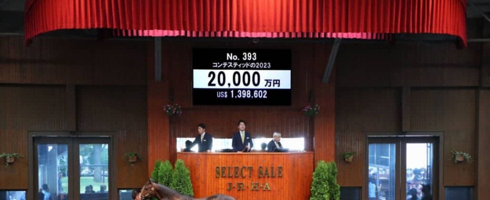 7月11日、北海道苫小牧にあるノーザンホースパークで、日本最大のサラブレッド市場「セレクトセール2023」が開催。当歳馬セールにて上場番号393番・コンテスティッドの2023(牡)が2億円で落札された。