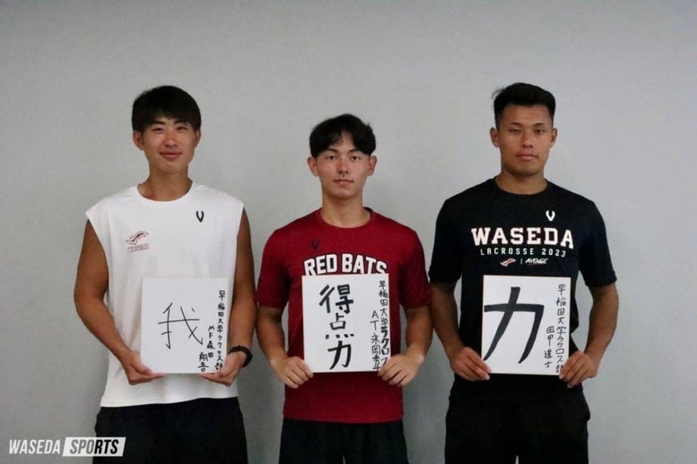 『3年生が強いチームは強い』、大学スポーツでよく聞かれるこの言葉はラクロスという競技にも、もちろん当てはまるだろう。そして早大ラクロス部にも各ポジションにチームを引っ張る3年生トリオがいる。AT永岡秀斗(創理3=東京・早実)、MF森田翔吾(法3=東京・早大学院)、DF田中進士(商3=神奈川・桐蔭学園)の3人だ。第2回の対談では、そんな3人に3年生としての役割、そしてチームへの思いを存分に話して頂いた。