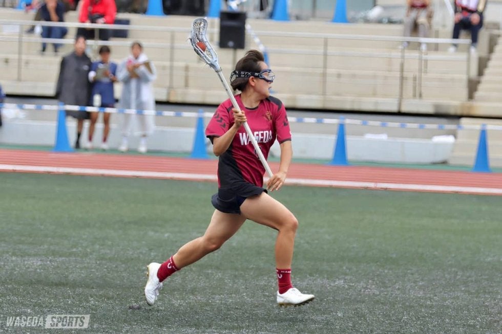 水野 もっと緊張してる自分を想像してましたが、全然緊張しなかったです。早慶戦が楽しみで待ち遠しい気持ちのまま試合に入れたので、気持ちの面ではいい状態でした。ただいざやってみると、今シーズンは練習時間が長くて、ラクロスに割いている時間も長かったはずなのに、前半はミスに怯えて思い通りにプレーできずチームも点差をつけられて、甘くないなという印象でした。結局1点差というスコアでしたが、ラクロスも甘くはないんだと思いました。一つでも自分やチームに対して自信がなければ、ああいう大舞台で全部の力を出すことができないのかなと思いました。