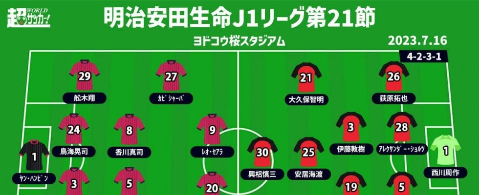 【明治安田生命J1リーグ第21節】 2023年7月16日(日) 19:00キックオフ セレッソ大阪(5位/32pt) v…
