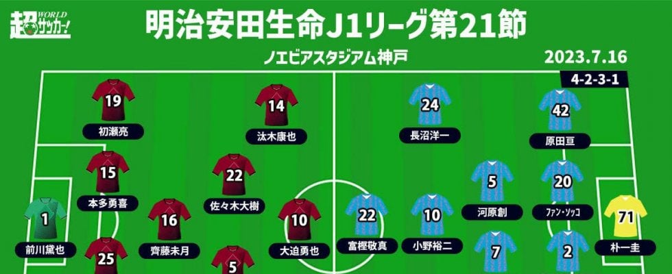 【明治安田生命J1リーグ第21節】 2023年7月16日(日) 19:00キックオフ ヴィッセル神戸(2位/40pt) …
