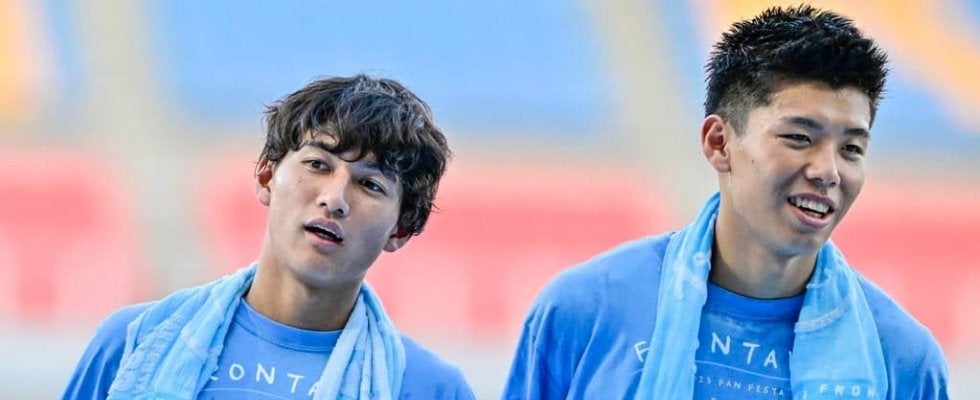 川崎フロンターレのファン感謝デーに参加した名願斗哉と高井幸大 撮影:中地拓也