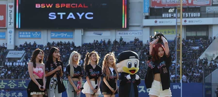 「STAYC」がスペシャルライブ&始球式 ISAの投球に場内拍手「一生懸命練習しました」
