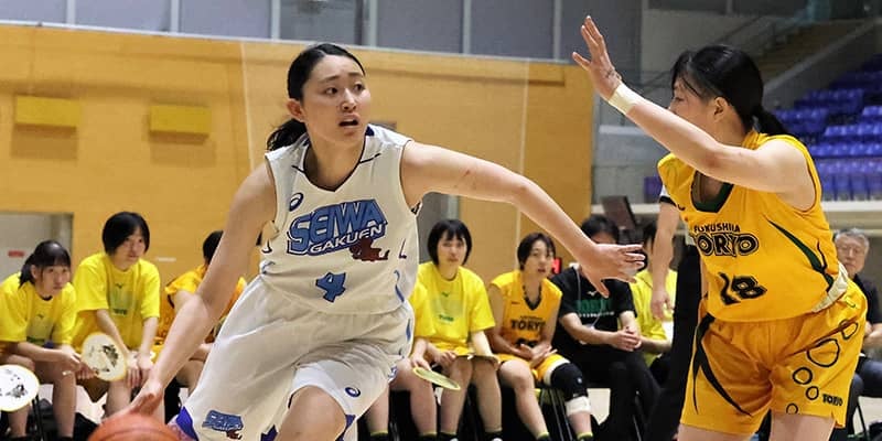 東北を圧倒的な強さで制した聖和学園。今年のチームは小気味いいテンポでゲームを作るガード陣と高さのあるウイング陣を揃え、非常にバランスのいいチームに仕上がっている。チームの得点源としては、阿部友愛(175センチ)と内田理香(178センチ)ら2年生コンビが成長中である。そんな中で、チームの絶対的な核となっているのが、3年生のキャプテン高瀬ゆのか(175センチ)だ。