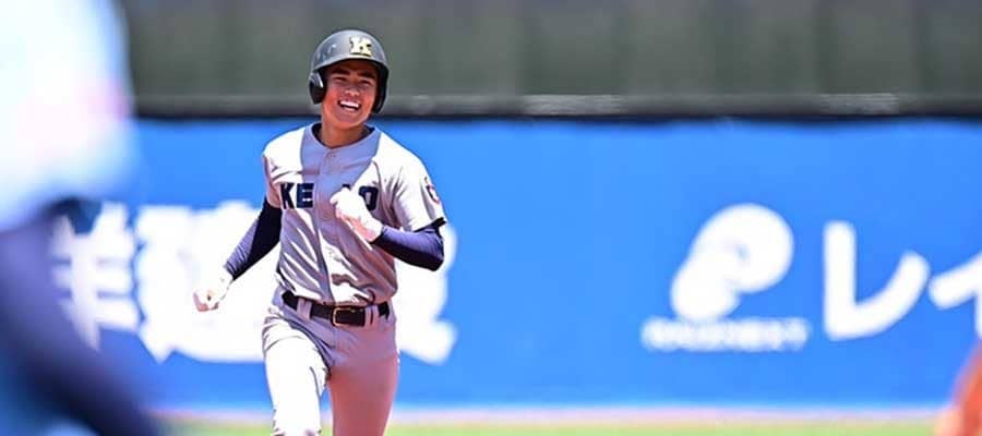 慶応は、初回2死一、三塁から5番・延末藍太内野手(3年)の右翼席への3ランで先制すると、3回には3番・渡邉千之助外野手(3年)にも2ランが飛び出し、序盤で5点をリード。さらに4回には四球を挟み6連打を放つなど打線が爆発、打者一巡の猛攻で4点を追加し、9-0と大きくリードを広げた。6回にも4番・加藤右悟外野手(2年)に2ランが飛び出すなど3点を追加。その裏の東海大相模の反撃も1点でしのぎ、コールド勝ちとした。