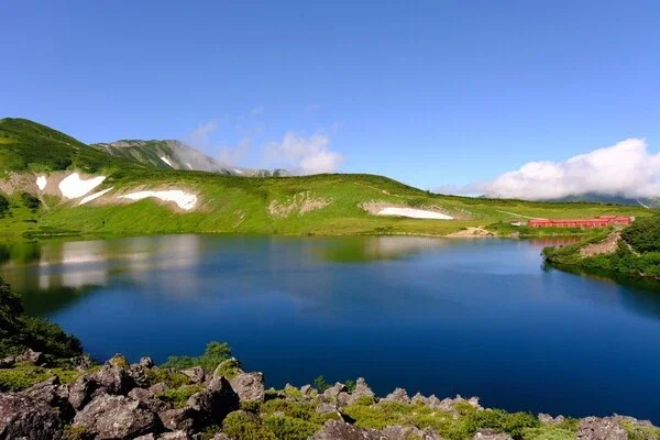 白馬大池。赤い建物は白馬大池山荘 photo by Semi