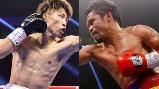 フルトン戦で世界を震撼させる強さを発揮した井上(左)。そんな怪物と偉人パッキャオ(右)が対峙したらどうなるか。(C)Ge…