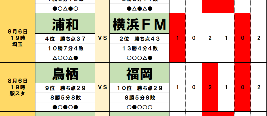 今回のtotoではJ1第22節の9試合とJ2第29節の4試合が対象となっている。過去のデータや直近の様子などから、分析…