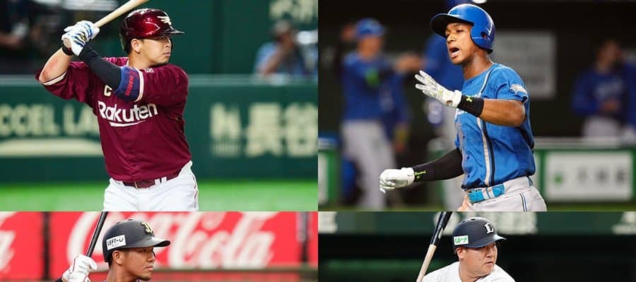 楽天・浅村栄斗、日本ハム・万波中正、西武・中村剛也、オリックス・頓宮裕真(左上から時計回り)【写真:矢口亨】
